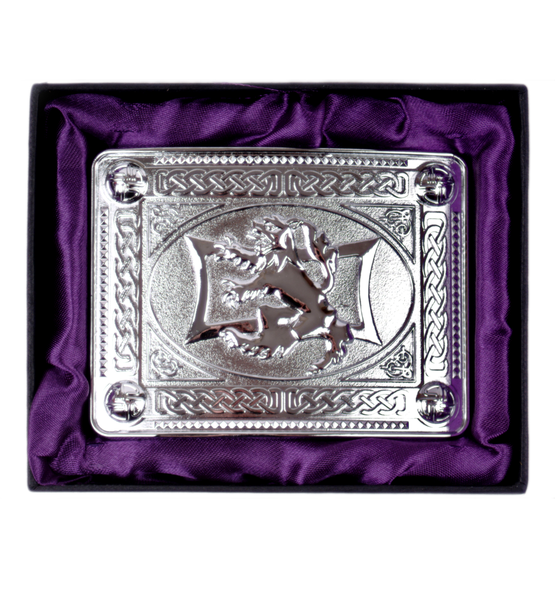 “Lion Rampart” Buckle in chrome effect finish. Comes gift boxed. Ideal gift. Matches Lion Rampart Kilt Range. Approx size 3.5″ x 3″