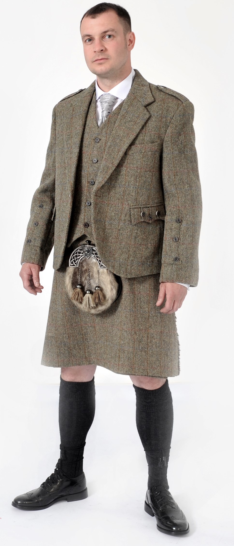 Harris Tweed 8 yard Kilt & Jacket Package Offer Newly designed tartan Full Highland Dress Package. Includes 8 yard hand made Harris Tweed kilt & Harris tweed Crail jacket set
